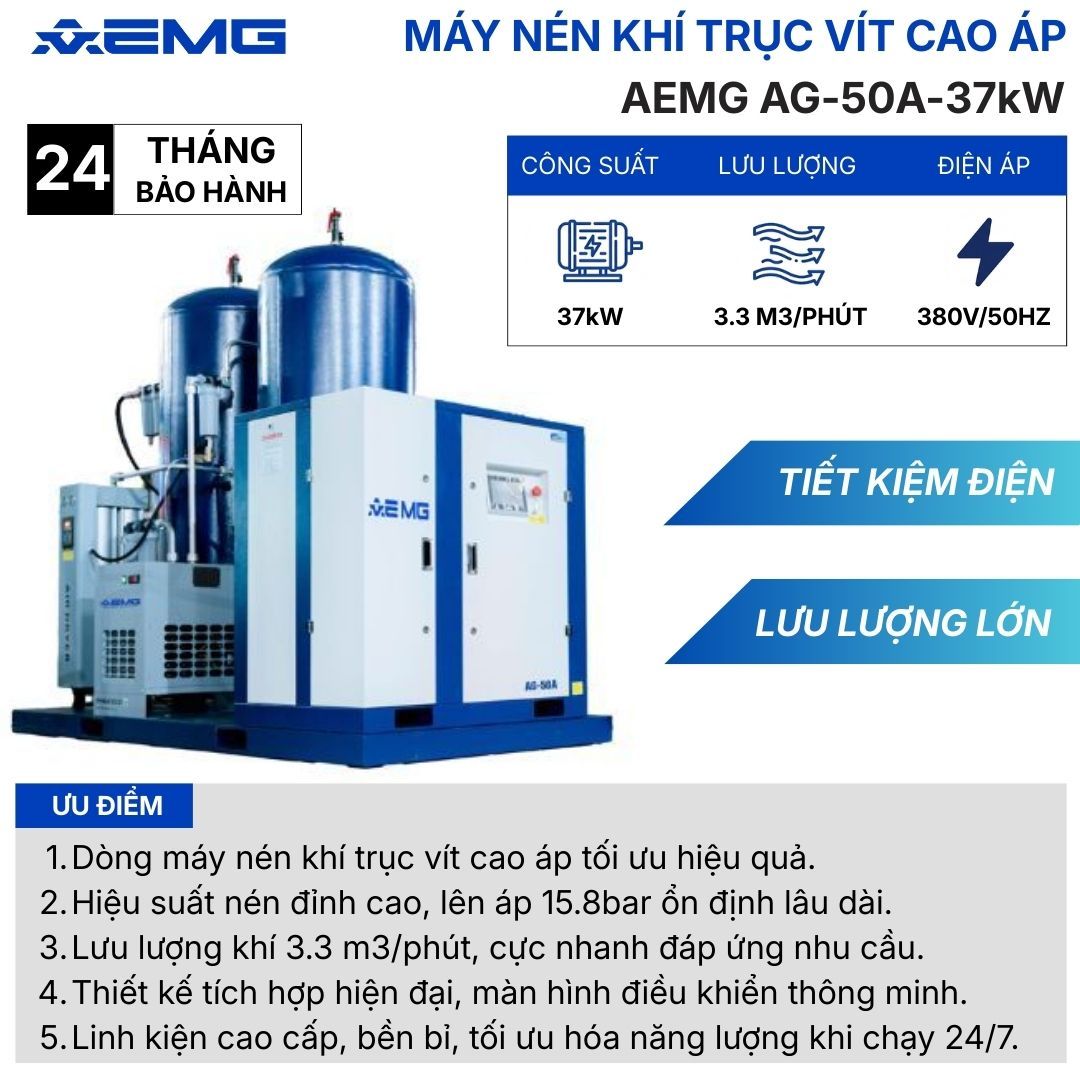 MÁY NÉN KHÍ TRỤC VÍT CAO ÁP AEMG AG – 50AH