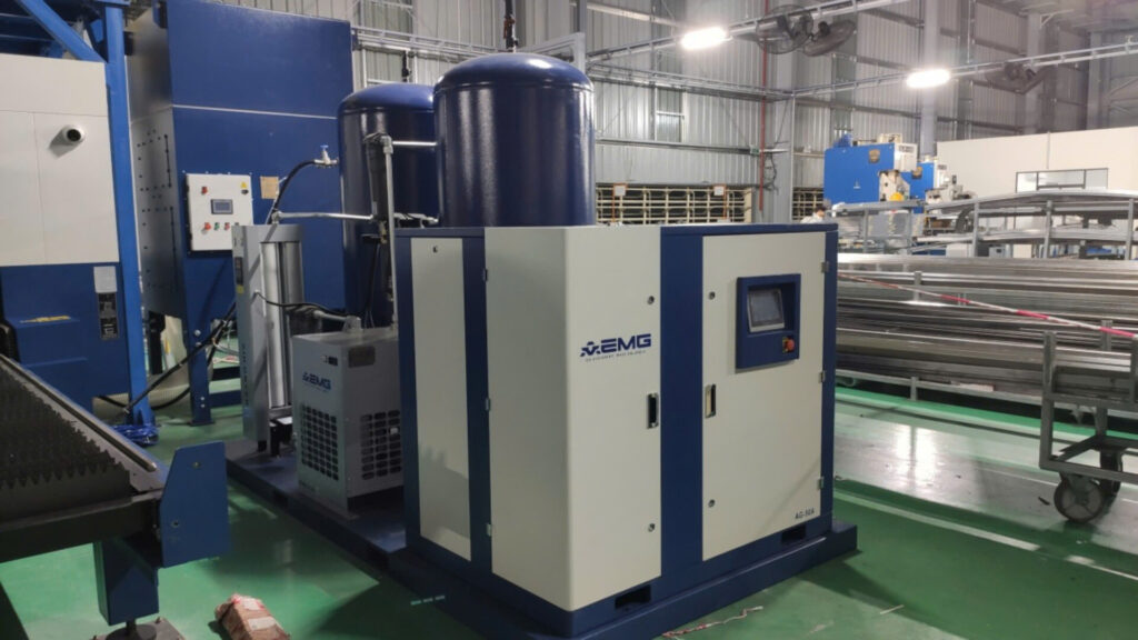Khi doanh nghiệp của bạn nâng cấp lên các dàn máy cắt Laser Fiber công suất lớn (từ 12kW, 15kW đến 20kW+) để cắt thép tấm, inox dày, một nguồn khí nén áp lực 8 bar thông thường sẽ khiến đường cắt sinh nhiều xỉ, ba-via và làm hỏng bép cắt. Để giải quyết triệt để bài toán này, Máy nén khí trục vít cao áp AEMG AG-50AH (công suất 37kW) ra đời. Với áp lực làm việc lên tới 15 – 16 bar cùng lưu lượng khí dồi dào, cỗ máy 50HP này mang đến luồng khí nén cực mạnh, giúp mạch cắt sáng bóng, tốc độ gia công nhanh và tối ưu hóa chi phí sản xuất.