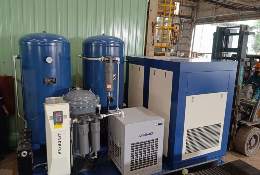 Máy nén khí trục vít cao áp AG – 75A phù hợp với các máy Laser có công suất nguồn từ 30kw trở lên.