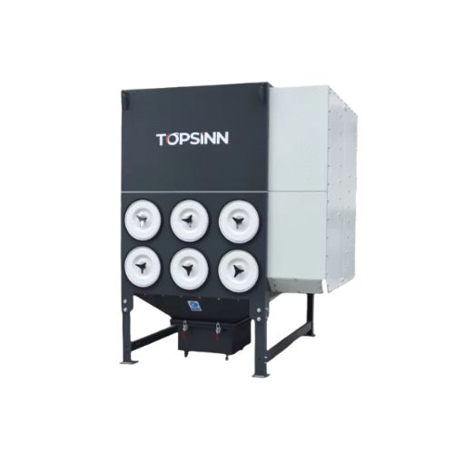 Dưới áp suất âm mạnh của quạt tua bin, khi ống dẫn khí ô nhiễm đi vào cửa hút khí, trước tiên nó sẽ gặp cánh gió giữa cửa hút khí, làm hỏng không khí đi vào và làm chậm tốc độ dòng chảy. Do trọng lực lắng xuống, bụi thô rơi trực tiếp vào miệng bụi của các hạt lớn, đóng vai trò khử bụi trước. Sau khi các hạt bụi mịn và mật độ thấp đi vào buồng lọc bụi, bụi trong không khí vẫn ở trên bề mặt của lõi lọc, và không khí sạch đã lọc đi vào buồng khí và được ống xả thu gom đến cửa ra thông qua quạt.